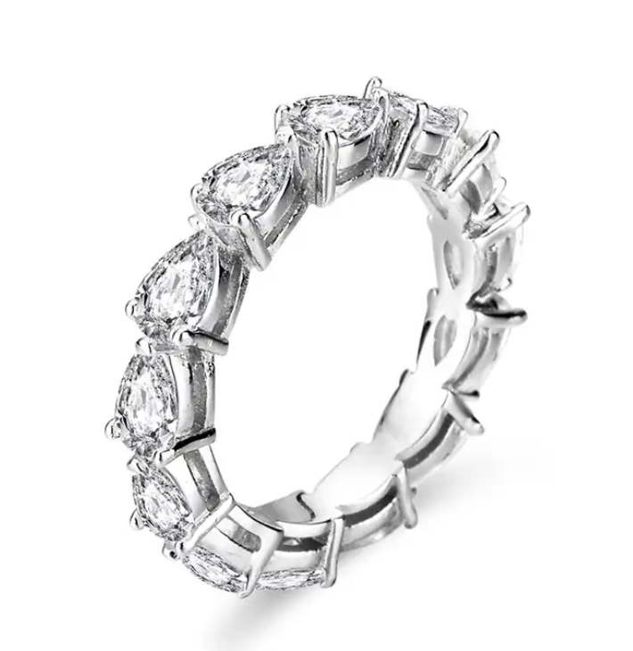 Raindrop Moissanite and CZ Band Ring