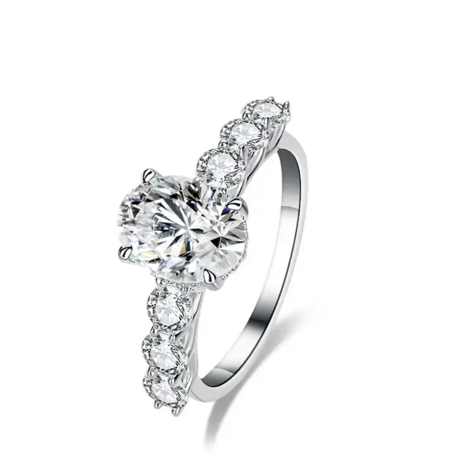 - Oval cut moissanite: 2ct
